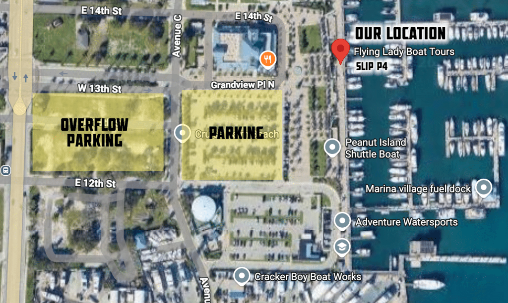 FIND THE BOAT: We are located at the docks behind Guanabanas Restaurant in downtown Jupiter, Florida. Parking is available via Valet at the restaurant or just past Guanabanas in the public parking lot.