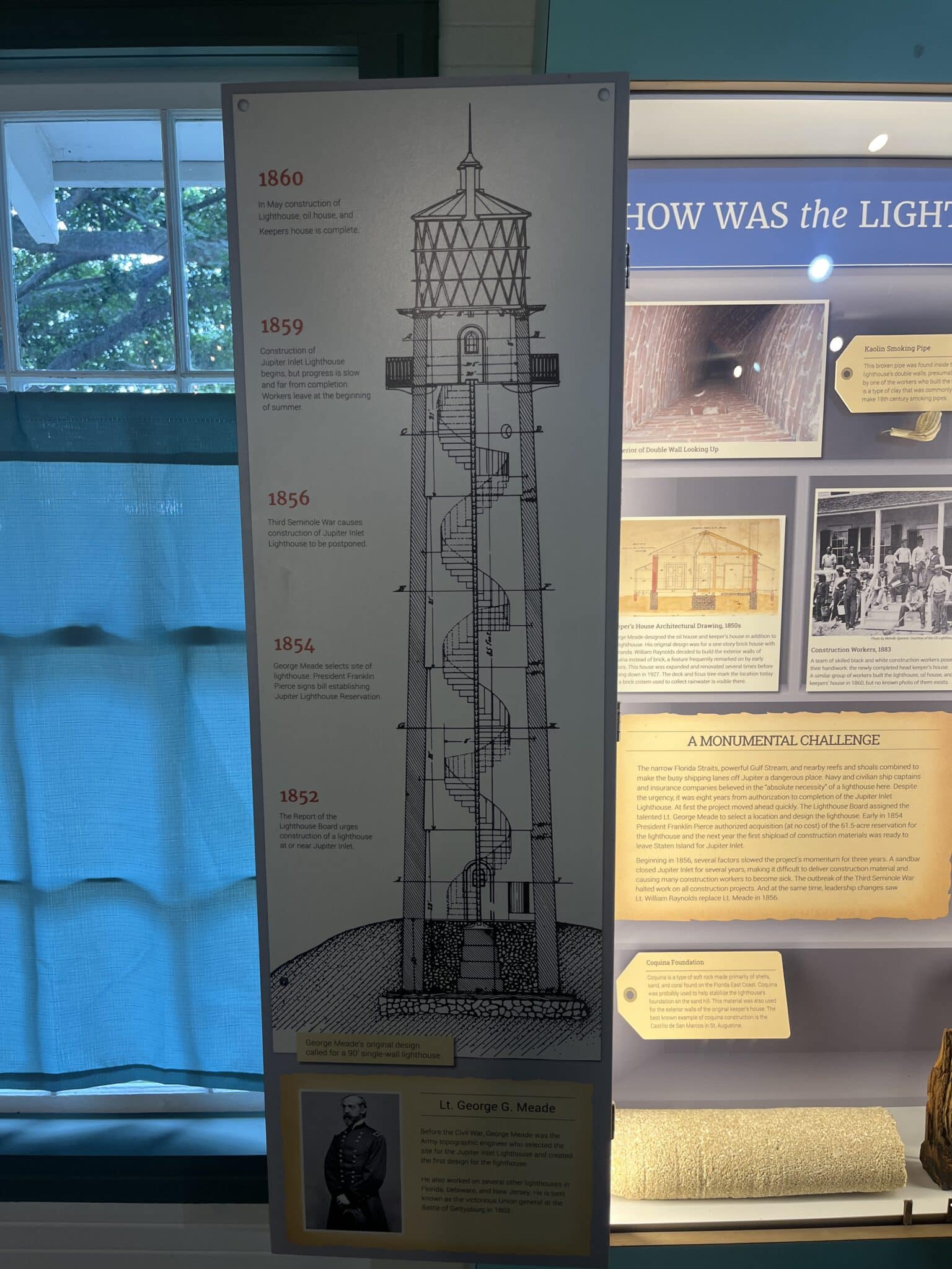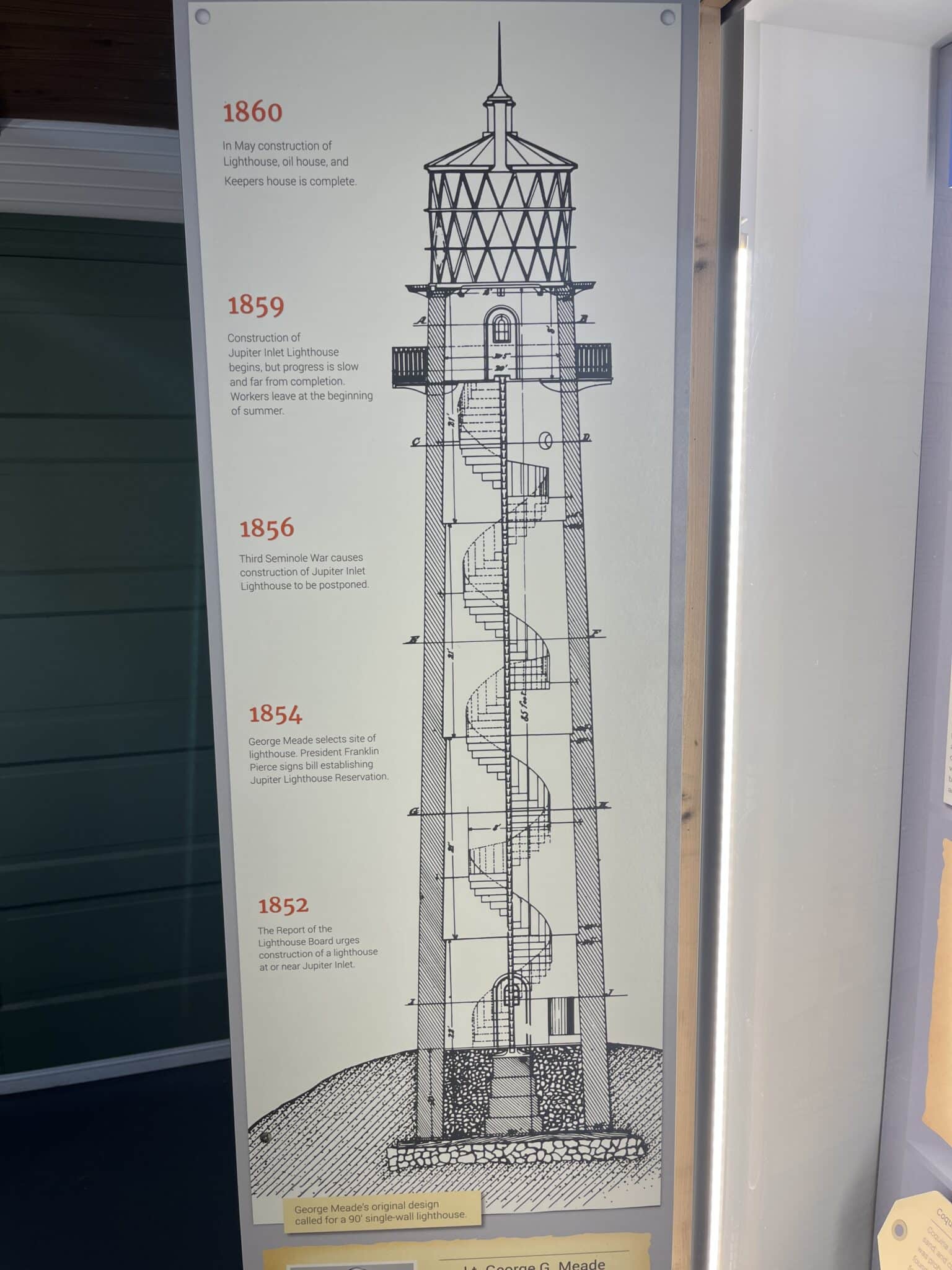 Currently the lighthouse is not operating with it’s equipped lens due to construction of the Jupiter Federal Bridge project. With all of the pounding of pilings next to the site, the caretakers of the lighthouse thought it prudent to wrap the lens during construction and monitor the lens.